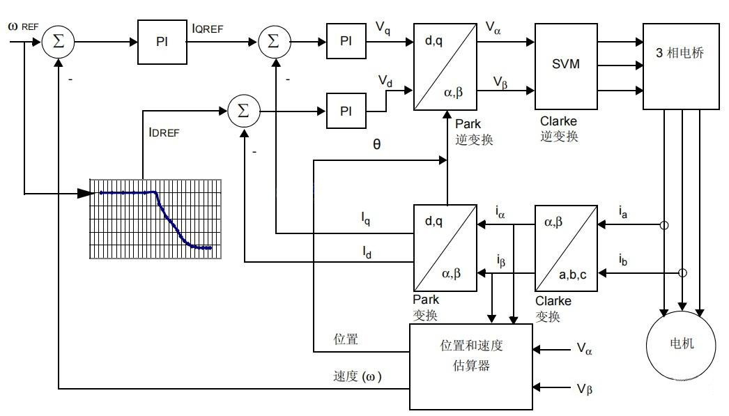 圖四:無傳感器FOC矢量控制框圖