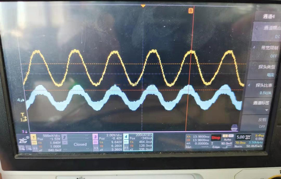 圖三:FOC控制時,電機相電流波形